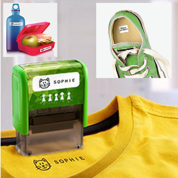 - 8 motifs et 1 tampon encreur noir avec encre spéciale textile.
